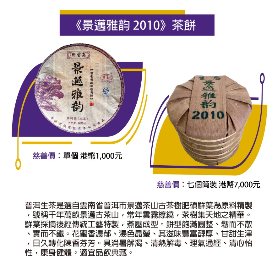 敬請支持我們的「童心同茗」普洱茶餅慈善義賣,在嘗到的每一口茶充滿愛與溫暖之餘,更能支援香港學生輔助會的住宿照顧服務。您購買的茶餅不僅餘韻悠長,更讓因家庭困難以需入住香港學生輔助會的孩子能得到適切的照顧,讓這個中秋佳節更具意義。
